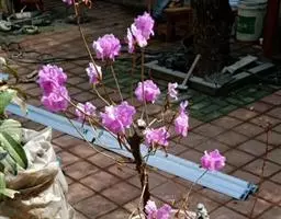 为加速植株盛开,杜鹃常通过摘心来促发新枝,对于花朵簇拥、影响花形的可以提早疏蕾,这样不但使当年花大色鲜,也有利于植株来年生长开花。杜鹃萌发力强,枝条严重影响植株生长发育,降低其观赏性和商品性,因此需通过修枝来调整。修枝一般在春季花谢后及秋季进行,剪去枯枝、斜枝、徒长枝病虫枝及部分交叉枝,避免养分消耗,使整个植株开花丰满。
