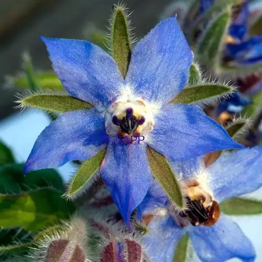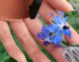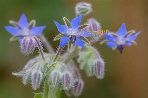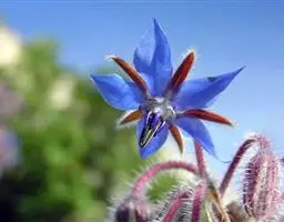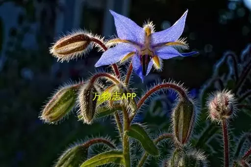 琉璃苣(学名:Borago officinalis Linn.)是紫草科琉璃苣属植物,一年生草本芳香植物。全株密生粗毛,株高60-100厘米。茎直中空有棱,近圆形。单叶互生,卵形。聚伞花序,深蓝色,有黄瓜香味,花冠5瓣,雌雄同花,雄蕊鲜黄色,5枚。每花有种子1-4粒,种子黑色,长圆形小坚果。