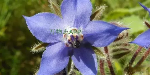 一年生草本芳香植物。全株密生粗毛,株高60-100厘米。茎直中空有棱,近圆形。单叶互生,卵形,叶长12-20厘米,宽2-12厘米。聚伞花序,深蓝色,有黄瓜香味,花冠5瓣,雌雄同花,雄蕊鲜黄色,5枚。每花有种子1-4粒,种子黑色,长圆形小坚果。 琉璃苣