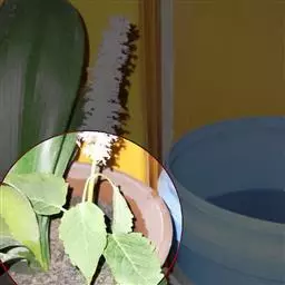 穗状花序,灰白色。栽培种有斑叶型,其叶肉质有红晕;花叶型,其叶中部绿色,边缘为一阔金黄色镶边;亮叶型,叶心形,有金属光泽。皱叶型,叶脉深深凹陷,形成多皱的叶面,极为有趣。 荷叶椒草