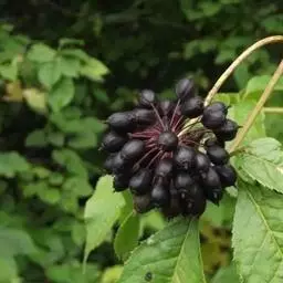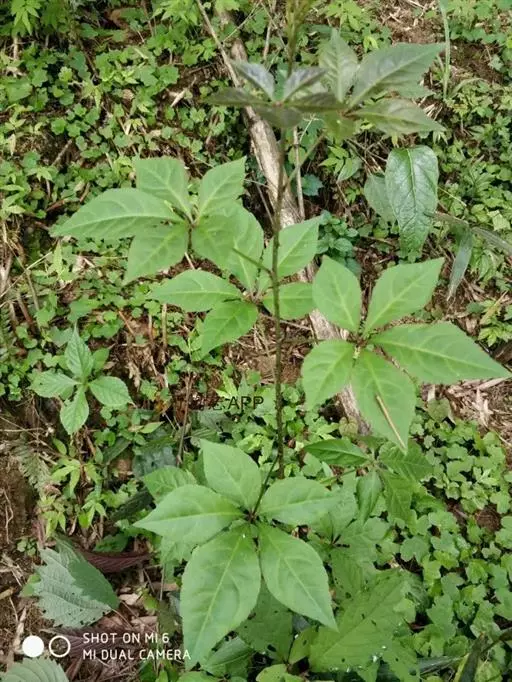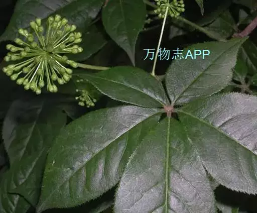 刺五加(拉丁学名:Acanthopanax senticosus (Rupr. Maxim.) Harms),别名:坎拐棒子、老虎潦、一百针。灌木,高1-6米;分枝多。叶有小叶5,稀3;叶柄常疏生细刺,小叶片纸质,椭圆状倒卵形或长圆形,先端渐尖,基部阔楔形,上面粗糙,深绿色,脉上有粗毛,下面淡绿色,脉上有短柔毛,边缘有锐利重锯齿;小叶柄有棕色短柔毛。伞形花序单个顶生,有花多数;总花梗无毛,花梗无毛或基部略有毛;花紫黄色;萼无毛;花瓣卵形;子房5室,花柱全部合生成柱状。果实球形或卵球形。花期6-7月,果期8-10月。