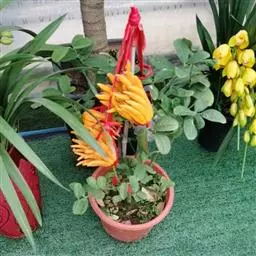 香橼为小乔木或灌木状;株高达5米;幼枝、芽及花蕾均暗紫红色;茎枝多刺,长达4厘米;单叶,…