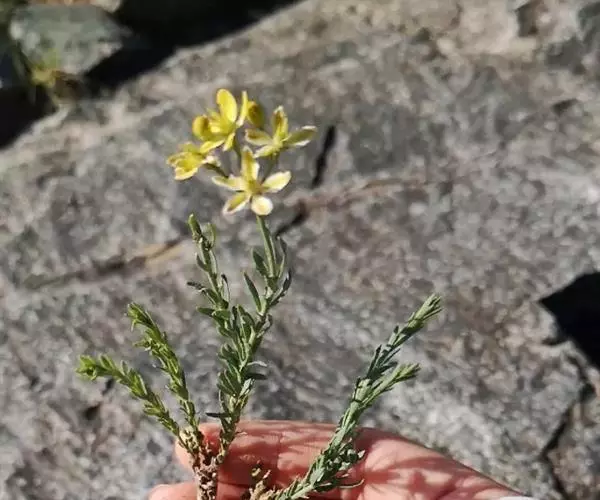 伞房状聚伞花序,顶生,通常多花,很少为3花的聚伞花序;苞片细小,线形;萼片5,基部合生,长约1毫米,边缘被短柔毛;花瓣5片,黄色,边缘薄膜质,淡黄或白色,长圆形,长6-8毫米,散生半透明颇大的油点;雄蕊10枚,与花瓣等长或路短,花丝中部以下增宽,宽阔部分的边缘被短毛,内面被短柔毛,花药长椭圆形,药隔顶端有大而稍凸起的的油点一颗;子房球形而略伸长,3室,稀2或4室,花柱细长,柱头略增大。