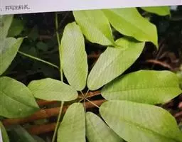 常绿木质藤本。茎与枝具明显的线纹。掌状复叶有小叶3-9片;叶柄稍纤细,长3.5-10厘米;小叶近革质,卵形、卵状长圆形、狭披针形或线状披针形,长5.5-14厘米,宽(2.5)3.5-5厘米,先端渐尖或尾状渐尖,基部圆或阔楔形,有时近截平,上面暗绿色,有光泽,下面淡绿色;侧脉每边5-6条,至近叶缘处网结,与中脉及纤细的网脉均于下面清晰凸起;小叶柄纤细,长2-4厘米,中间1枚最长。
