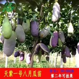 9-10月八月瓜果实成熟,将食用后留下的种子及时秋播或用湿沙混合贮藏,到翌年3-4月播种。种子播种前,先用碱水搓洗,再用清水漂洗干净,沥干水分待用。宜选择沙壤土作苗床,床宽1.5米,床长根据地块决定,床高15厘米。在苗床上按行距20厘米开横浅沟,沟深3-5厘米,将备好的种子每沟均匀的播入约100粒。播种后施腐熟人畜粪尿并盖草木灰,最后盖细土约1.5厘米。秋播以秋分后为宜,春播以惊蛰后为宜。秋播覆土厚度1-1.5厘米,春播覆土厚度0.5-1.5厘米。种子于4月中下旬发芽出土,此时注意遮阳、灌溉,保持苗床湿润。待苗出齐后中耕除草,结合中耕除草追肥,当幼苗4-5厘米时可间苗,每隔5厘米留1株,同时用带枝的小竹条间插行中,以供攀授,促进幼苗生长。整个苗木生长期要做到苗床无杂草,土壤湿润。干旱时要及时浇水,雨季要开沟排水,以免积水烂根。适时追肥,加速幼苗生长。2年后苗木可移栽。种子繁殖简单易行。