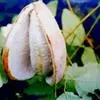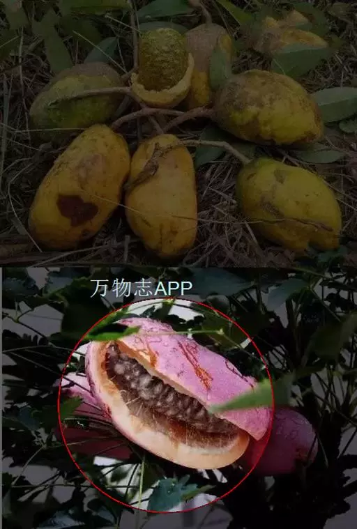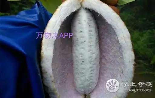 花数朵组成伞房花序式的总状花序;总花梗纤细,长1-3.5(5)厘米,数枚簇生于叶腋,基部覆以阔卵形至近圆形的芽鳞片。雄花:绿白色,外轮萼片长圆形,长12-15毫米,宽4-5毫米,先端钝,内轮的较狭,长圆状披针形,先端急尖;花瓣极小,倒卵形,长不及1毫米;雄蕊长约12毫米,花丝线形,长约7毫米,稍粗,花药长约5毫米,顶具短凸头,退化心皮小,卵状锥形,长约1.5毫米。雌花:紫色,外轮萼片卵状长圆形,长约22毫米,宽7-8毫米,内轮的较狭和较短;退化雄蕊小,花药棒状;花瓣小;心皮长圆形或圆锥状,柱头无柄,偏斜。果为不规则的长圆形或椭圆形,熟时红紫色,长(3)5-7厘米,直径2-2.5厘米,两端钝而顶常具凸头,外面密布小疣凸;种子多数,倒卵形,种皮褐色。花期4-5月,果期7-9月。