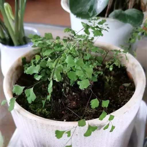 铁线蕨适应性强,栽培很普及的绿植之一,茎叶秀丽多姿,株型小巧,很适合小盆栽种植用来点缀家居窗台等地方。