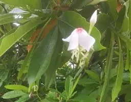 玫瑰树(Ochrosia borbonica Gmelin):夹竹桃科玫瑰树属乔木,高约4米;叶在枝的上部3-4片轮生,长8-15厘米,宽3-5厘米;叶柄长1-2厘米。聚伞花序伞形状或伞房状,长约3厘米;花萼裂片卵圆形,长2毫米,宽1.5毫米;花冠白色,高脚碟状,花冠筒圆筒状;雄蕊着生于花冠筒中部之上,花药内藏;子房由2个离生心皮所组成,椭圆形。核果2个,肉质、红色,长约4.5厘米,直径3.5厘米,内有种子3个。花期6月,果期6-9月。