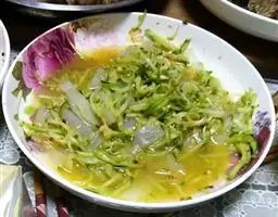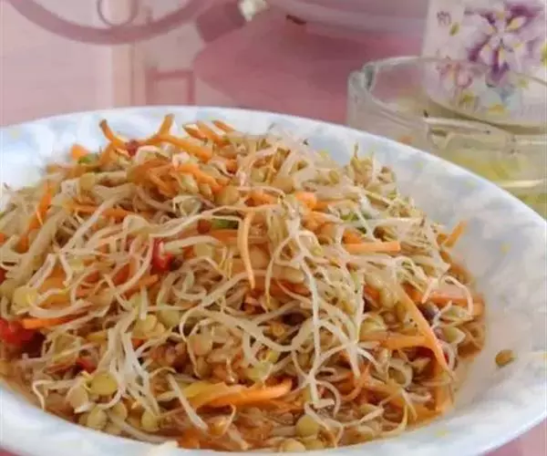 4、食用时,撒些豆芽菜,再淋上少许卤汁及蒜末即可。