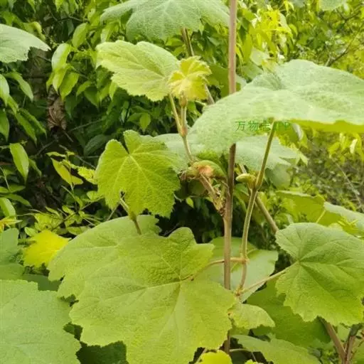 粗叶悬钩子 攀援灌木,高达5米。枝被黄灰色至锈色绒毛状长柔毛,有稀疏皮刺。单叶,近圆形或宽卵形,长6-16厘米,宽5-14厘米,顶端圆钝,稀急尖,基部心形,上面疏生长柔毛,并有囊泡状小突起,下面密被黄灰色至锈色绒毛,沿叶脉具长柔毛,边缘不规则3-7浅裂,裂片圆钝或急尖,有不整齐粗锯齿,基部有5出脉;叶柄长3-4.5厘米,被黄灰色至锈色绒毛状长柔毛,疏生小皮刺;托叶大,长约1-1.5厘米,羽状深裂或不规则的撕裂,裂片线形或线状披针形。花成顶生狭圆锥花序或近总状,也成腋生头状花束,稀为单生;总花,梗、花梗和花萼被浅黄色至锈色绒毛状长柔毛;花梗短,最长者不到1厘米;苞片大,羽状至掌状或梳齿状深裂,裂片线形至披针形,或裂片再次分裂;花直径1-1.6厘米;萼片宽卵形,有浅黄色至锈色绒毛和长柔毛,外萼片顶端及边缘掌状至羽状条裂,稀不分裂,内萼片常全缘而具短尖头;花瓣宽倒卵形或近圆形,白色,与萼片近等长;雄蕊多数,花丝宽扁,花药稍有长柔毛;雄蕊多数,子房无毛。果实近球形,直径达1.8厘米,肉质,红色;核有皱纹。花期7-9月,果期10-11月。