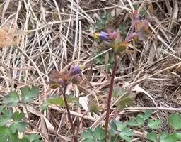 花3-5朵,较大而美丽,微下垂;苞片三全裂;钝;萼片紫色,稍开展,狭卵形,长2.5-3.1厘米,宽8-12毫米,顶端急尖;花瓣瓣片黄白色,长1-1.3厘米,宽7-9毫米,顶端近截形,距长1.5-2厘米,末端强烈内弯呈钩状;雄蕊与瓣片近等长,花药黑色,长1.5-2毫米;心皮5,被白色短柔毛。蓇葖长2.5-3厘米;种子黑色,长约2毫米。5-6月开花,7-8月结果。