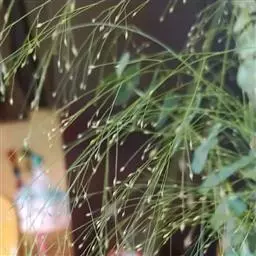 柳枝稷(Panicum virgatum L.)禾本科多年生草本。根茎被鳞片。秆直立,质较坚硬,高1-2米。叶鞘无毛,上部的短于节间;叶舌短小,顶端具睫毛;叶片线形,两面无毛或上面基部具长柔毛。圆锥花序开展,分枝粗糙,疏生小枝与小穗;小穗椭圆形,无毛,绿色或带紫色,第一颖长约为小穗的2/3-3/4,顶端尖至喙尖,具5脉;第二颖与小穗等长,顶端喙尖;第一外稃与第二颖同形但稍短,具7脉,顶端喙尖,其内稃较短,内包3雄蕊;第二外稃长椭圆形,顶端稍尖,长约3毫米,平滑,光亮。花果期6-10月。
