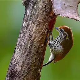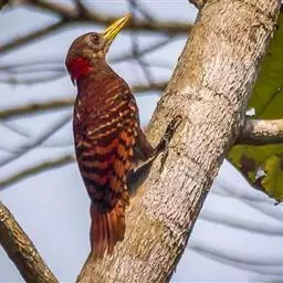 栗啄木鸟:是一种红褐色啄木鸟,体长21厘米。雄性成鸟整个头棕色,…
