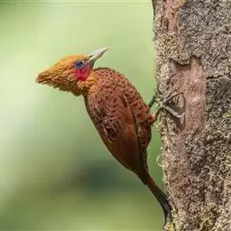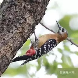 栗啄木鸟:是一种红褐色啄木鸟,体长21厘米。雄性成鸟整个头棕色,…