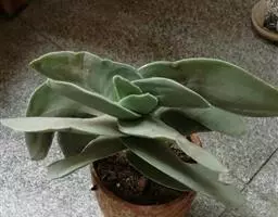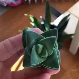 叶子表面宽厚,富肉质感且带有磨纱质感,看像石头质地;开红色小花,生于植株顶部,倒伞形密生,形状像花…