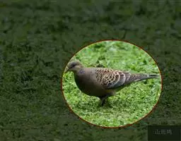 • 山斑鸠,是鸽形目鸽鸠科斑鸠属鸟类,又名金背斑鸠、棕背斑鸠、山鸠、金背鸠、麒麟斑、麒麟鸠、东方斑鸠、绿斑鸠、山鸽子。山斑鸠颈侧具明显黑白色条纹的块状斑,上体深褐色、具扇贝状斑纹,羽缘棕色,尾羽近黑色,下体多偏粉色。虹膜黄色,喙灰色,脚粉色。山斑鸠是留鸟,在中国常见且分布广泛。此外,还分布于不丹、尼泊尔、巴基斯坦、印度、日本等国。栖息于针阔混交林、季风常绿阔叶林、果园及农耕区,多成对活动于开阔农耕区、村舍、寺院周围及防火林带。取食于地面,主要觅食植物种子、果实、嫩芽等,也吃昆虫。山斑鸠飞翔时鼓翼快速,叫声为反复而低沉的“咕咕咕”声。繁殖期在4-7月,营巢于林中树上,通常一年繁殖2窝,窝卵数2枚,由雌雄亲鸟轮流孵卵,孵化期18~19天。山斑鸠的肉、卵可食,肉入药可益气明目、强筋壮骨,治久病气虚、衰弱无力、两目昏暗等病症。山斑鸠啄食杂草种子,对农田清除杂草有益;但有时也刨食农作物及树的种子。山斑鸠