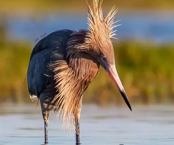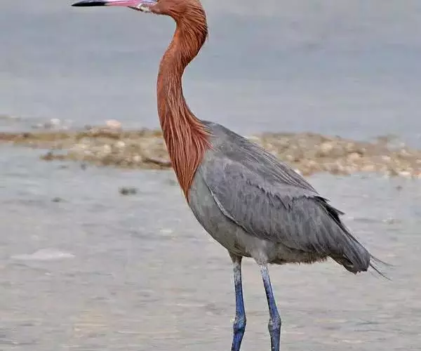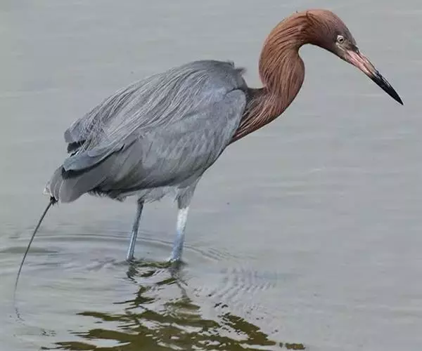 棕颈鹭(学名:Egretta rufescens):是一种中型涉禽,体长68-82厘米,翼展116-124厘米,体重700-850克。雌雄同色。体形呈纺锤形,体羽疏松。嘴长而尖直,翅大而长,脚和趾均细长。有黑头粉红色的鸟喙。腿和脚蓝黑色。两性很相似。但有两个羽毛颜色差别很大的亚种,一种成鸟身羽很暗,石板蓝色,头部和颈部是毛茸茸的红色羽毛。另一种成鸟身体完全是白色羽毛。在交配期,雄性头部的丝状蓑羽突出,颈部和背部均有饰羽。
