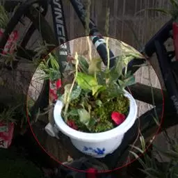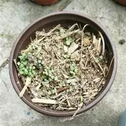 方法一 准备好兰盆及植料后,将兰株倒拿(根在上,叶在下)放于水龙头下以慢水冲洗,但水压切忌过强,以免伤兰根及叶子。用拇指和食指抓住兰头,小指抵住盆缘,用竹筷将根固定,当放入盆内时,尽量不要让根接触到盆壁。将豆粒大的混合石砾倒入盆底至三分之一处。然后倒入中粒植料至五分之四处,填实和尽量不要留下空间。将竹筷拔出,并摇实盆中植料。填实植料后,再用大粒植料埴入至距盆缘1.5厘米处。最后再倒入豆粒大植料,以将假鳞茎全部埋入土中为度,然后充分摇实。用压土工具轻压植料,并将表面弄平。种植完毕后,植料在盆中以中央稍高为好。