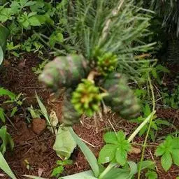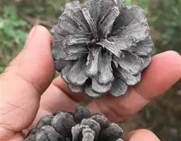 松树果 松树有些种结实较早,5~6年即可有少量结实,15~20年时显著增多(马尾松、油松、云南松等);有些种结实很晚,如红松在天然林条件下,要到80~140年才开始结实(但在人工林条件下,15~20年已开始结实)。大多数松树结实有间隔性,每隔2~3年或更长的年度丰收一次。松树雄球花位于新梢的基部,雌球花大多数见于主枝的轴端。球果成熟有一个相当长的过程。