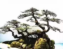松画艺术:松树具有阳刚之美,它的枝干更是具有柔中有刚的特征,松的叶给人以清脱之感。它是我们民族心目中的吉祥树,是常青不老的象征。松树,有的像虬龙,故称虬松,其枝干多变,直处坦率,弯曲内含,显出龙探青山之状;也有的曲中有直,变化非凡,似蛟龙入海之态;有的巨臂遮天,挺拔刚毅,有拔地钻云腾飞之势也。松树是山水画中应用最多的树木之一,无论是旷野还是山巅,都生长有松树。松树还可以作为主体形象表现。生长在肥沃平地的松树高大茂盛,常常挺拔高入云际;生长在山石空隙的,常常蜿蜒曲折,盘地如苍龙。它们共同的特点是:生长到一定年龄,枝干就不再往高处长,而枝多横出,形成伞状,“枝如游龙,叶如翔凤”。画松,首先要“有情而动”,唐末五代山水画大师荆浩,他见到体态优美的松树,就“因警其异,遍而赏之。明日携笔复写之,凡数万本,方如其真”。这个“真”,不是形同照相,而是抓住了松树的灵魂,因此才能描绘出松树的“皮老苍藓,翔鳞乘空”“蟠虬之势,欲附云汉”,或“抱节自屈”,或“回根出土”,正因为荆浩对松树怀有深情,才能做到认真观察与研究,悟到画松的妙理。