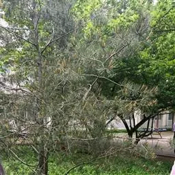 ⑶大部分针叶变为黄褐色,萎蔫,可见松褐天牛的蛀屑;