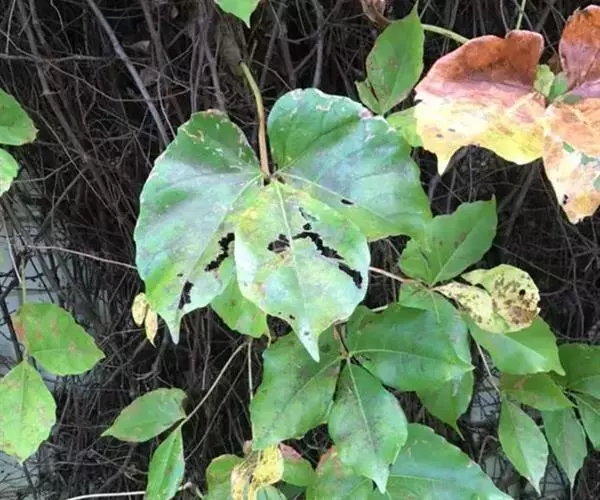 三叶爬山虎(P.himalayana),叶小,3枚。聚伞花序。产四川。