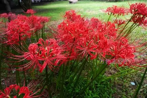 石蒜是东亚常见的园林观赏植物,冬赏其叶,秋赏其花。是优良宿根草本花卉,园林中常用作背阴处绿化或林下地被花卉,花境丛植或山石间自然式栽植。因其开花时光叶,所以应与其他较耐明的草本植物搭配为好。可作花坛或花径材料,亦是美丽的切花。