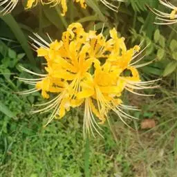 中国石蒜草本,地生。植株无毛,叶带状,顶端圆;伞形花序,花黄色;花被裂片背面具淡黄色中肋,倒披针形…