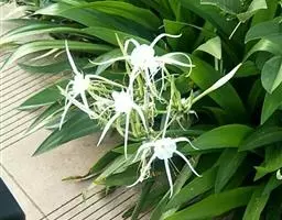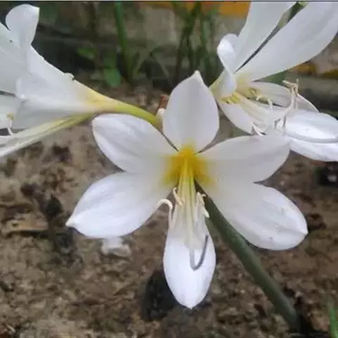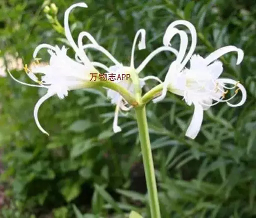 长筒石蒜草本,地生。鳞茎卵球形;叶披针形;伞形花序,有花5-7朵,花白色;花被裂片腹面稍有淡红色条纹,…