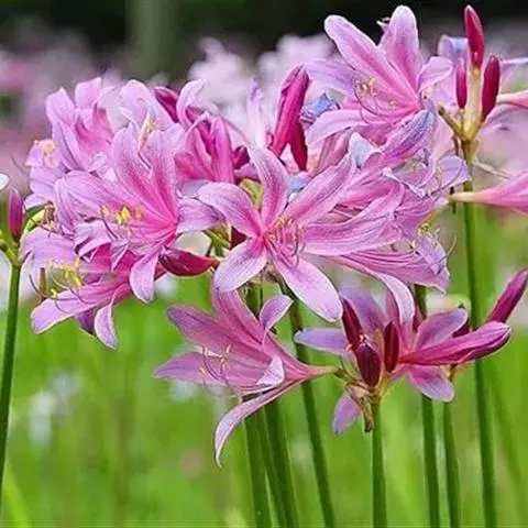 换锦花是石蒜科石蒜属的多年生草本植物。鳞茎为卵形;早春出带状绿色叶;伞形花序有花,为淡紫红色,…