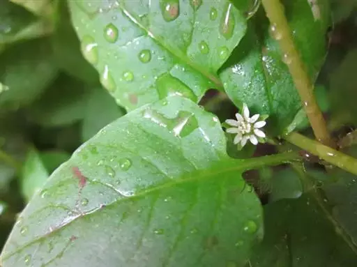 性状鉴别 全草长20-60cm。茎光滑,多分枝;表面略带紫红色,节部和嫩枝梢处更明显。叶对生,膜质;完整叶片宽卵形或卵状椭圆形,长1.5-5.5cm,宽1-3cm,先端锐尖,基部心形或圆形,全缘或呈浅波状;上部叶无柄或具极短柄,下部叶叶柄长5-18mm,疏生柔毛。花白色,生于枝端或叶腋。蒴果卵圆形。种子近圆形,褐色,密布显著的刺状突起。气微,味淡。