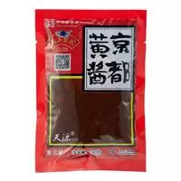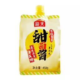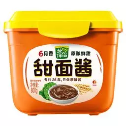 甜面酱,又称甜酱,是以面粉为主要原料,经制曲和保温发酵制成的一种酱状调味品。其味甜中带咸,同时有酱香和酯香,适用于烹饪酱爆和酱烧菜,如“酱爆肉丁”等,还可蘸食大葱、黄瓜、烤鸭等菜品。
