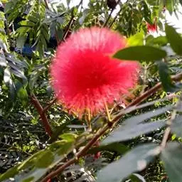 朱缨花(学名:Calliandra haematocephala Hassk.)豆科、朱缨花属落叶灌木或小乔木;枝条扩展,小枝褐色,粗糙。托叶卵状披针形,宿存。头状花序腋生,有花约25-40朵,总花梗长1-3.5厘米;花萼绿色;花冠淡紫红色,顶端裂片无毛;雄蕊突露于花冠之外,雄蕊白色,管口内有钻状附属体,上部离生的花丝深红色。荚果线状倒披针形,暗棕色,成熟时由顶至基部沿缝线开裂,果瓣外反;种子长圆形,棕色。花期8-9月;果期10-11月。