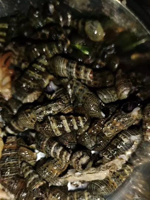 山坑螺呈圆锥形,如小手指大小,每年秋天是吃山坑螺的最佳时节。