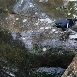 白喉红尾鸲(学名:Phoenicurus schisticeps),小型鸟类,体长14-16厘米。雄鸟额至枕钴蓝色,头侧、背、两翅和尾黑色,翅上有一大形白斑,腰和尾上覆羽栗棕色。颏、喉黑色,下喉中央有一白斑,在四周黑色衬托下极为醒目,其余下体栗棕色,腹部中央灰白色。雌鸟上体橄榄褐沾棕,腰和尾上覆羽栗棕色,翅暗褐色具白斑,尾棕褐色。下体褐灰色沾棕,喉亦具白斑。特征均甚明显,野外不难识别。