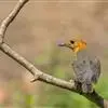 金色林鸲是鹟科、鸲属小型鸟类,体长12-15厘米。头顶至背黄橄榄绿色,眼先和头侧黑褐色,眉纹金橙黄色。…