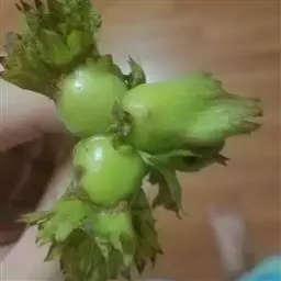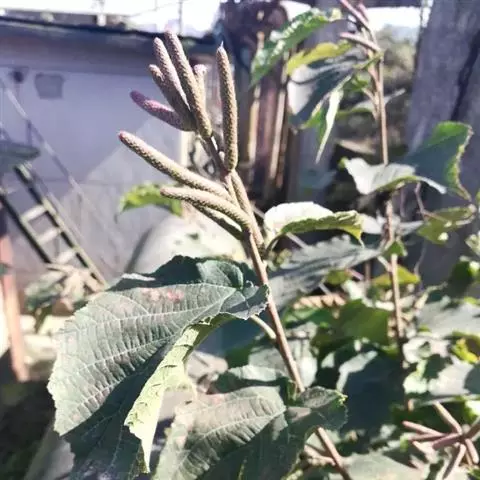 雄花序着生于小枝的上部叶腋,圆柱状直立或下垂,1-7个总状着生,长1.3-4.3厘米,直径2.7-4.1毫米;三角形的苞片小,其上的刺毛贴附,果苞钟状,苞叶两片开张,长于坚果与坚果等长,其上密生腺毛和柔毛,上端具浅裂,有锯齿。坚果圆球形红褐色,灰褐色,1-5个簇生,果面具短绒毛,坚果平均果径1.45厘米,单果重1.71克,果壳厚度1.80毫米,出仁率27.7%,果仁无空心。开花期3月,坚果成熟期9月中下旬。