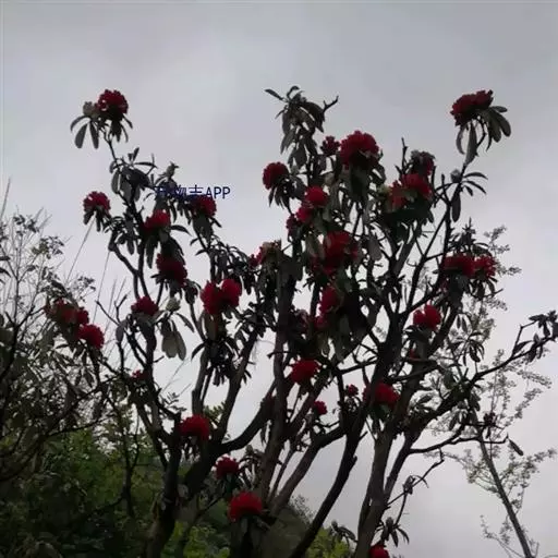 马缨杜鹃(学名:Rhododendron delavayi Franch.):常绿灌木或小乔木,高1-7米;树皮淡灰褐色;幼枝粗壮。顶生冬芽卵圆形,淡绿色。叶革质,长圆状披针形,上面深绿至淡绿色,下面有白色至灰色或淡褐色。顶生伞形花序,圆形,紧密,有花10-20朵;花冠钟形,长3-5厘米,直径3-4厘米,肉质,深红色,裂片5,近于圆形。蒴长圆柱形,黑褐色。花期5月,果期12月。