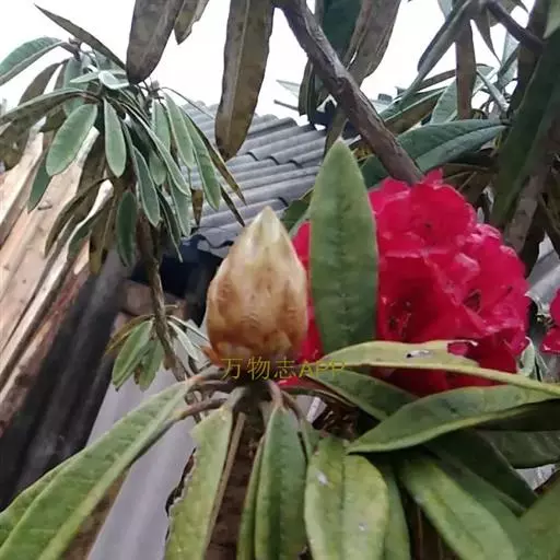 羊毛杜鹃:常绿灌木,小乔木,高3-6米;小枝粗壮,直径7-9毫米,密被黄锈色绒毛,老枝无毛。叶厚革质,…