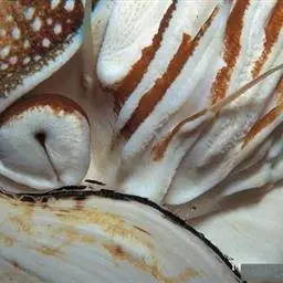 鹦鹉螺:是头足纲、鹦鹉螺科的海洋软体动物的通称。共有2属、6种,具卷曲的珍珠似外壳,…