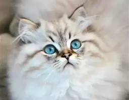 在越大头的二侧,耳朵大小适中,基本向正前方打开,下耳根打开宽阔,二耳距离随着年龄的增长而加大,成年后二耳距离有一个耳朵或是二个到二个半眼睛的距离。幼年时二耳距离越小。耳背毛稀少,且耳背毛的中间部分颜色浅淡,成年雄壮公猫有时耳尖有长毛,但在母猫中非常少见。
