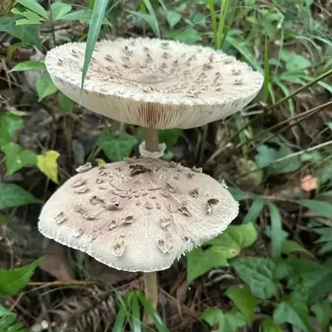许多蘑菇还会有鳞片,大部分存在于菌盖上或者菌柄上,它们一种是纸质,由大量纤维细胞和少量膨大细胞组成;而有的蘑菇鳞片是容易破碎的膜质,它们由少量纤维细胞和大量膨大细胞组成。膨大细胞相当于水泥,纤维细胞相当于钢筋,因此很多蘑菇我们可以通过它们的鳞片软硬、脱落程度、颜色、形状来分辨蘑菇种类。