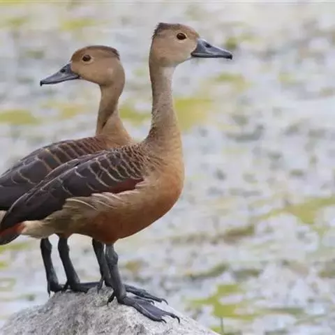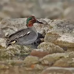 绿翅鸭是小型鸭类,体长37厘米,体重约0.5千克。嘴脚均为黑色。雄鸟头至颈部深栗色,…