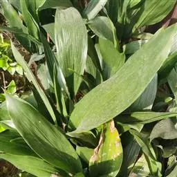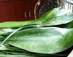 叶: 叶单生,相距约1厘米;叶长圆形或长圆状披针形,长20-30厘米,宽3-6.5厘米,先端渐尖,基部楔形:叶柄长16-33厘米