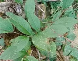 竹节 白粉病典型症状 蓼是一种世界广泛分布的观赏植物,热带地区常用于园林绿化,欧洲大多用于盆栽。自2005年3月始,捷克共和国布拉格植物园的温室竹节蓼上周期性发生白粉病。叶片正、背面有不规则白色菌落,茎上无症状。