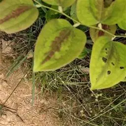 菝葜,菝葜科菝葜属 多年生藤本落叶攀附植物,茎干较粗,嫩白色,呈圆柱形,表面带有小刺;叶子较大,…