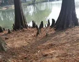 落羽杉 Rich.),杉科落羽杉属木本植物。树干尖削度大,基部通常膨大,具膝状呼吸根,树皮棕色,…