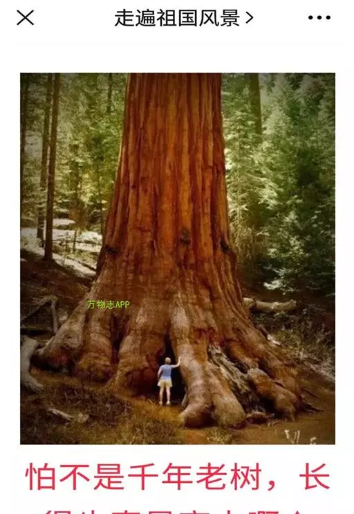 巨杉是208亿-1.44亿年前的侏罗纪代表植物。远在7千多万年前曾遍布北半球,经过第四纪冰川的浩劫,只有美国加利福尼亚内华达山脉西坡的小片地方保留了少量幸存者,因而十分稀有。巨杉的年龄在生物界中也是首屈一指,最高的那棵巨杉已有5千多岁,被称为“世界爷”。
