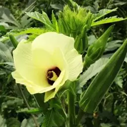 咖啡黄葵 Moench)亦称黄秋葵,是锦葵科一年生草本植物。茎圆柱形,疏生散刺。叶掌状,裂片阔至狭,…