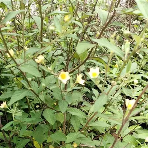 黄蜀葵 Medicus),是锦葵科秋葵属一年生或多年生草本。全株疏被长硬毛;叶近圆形,…